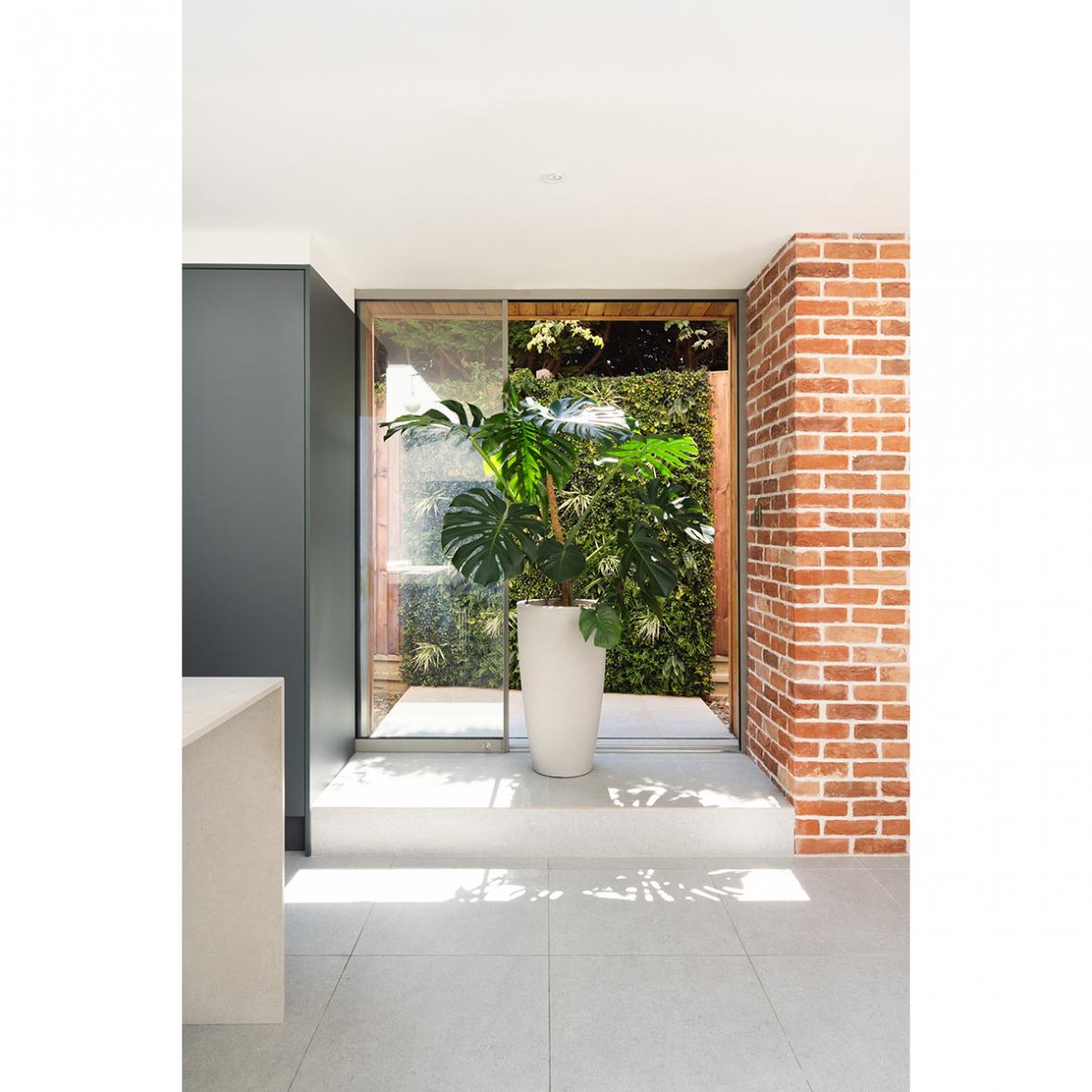 The original architecture featured a common combination of red brick facades, white uPVC windows and concrete roof tiles. There was a missed opportunity in the complete absence of a relationship with the garden located at the side of the property. With the garden elevated above the internal floor level, a narrow path around the house served as a ditch, making access to the garden uncomfortable.